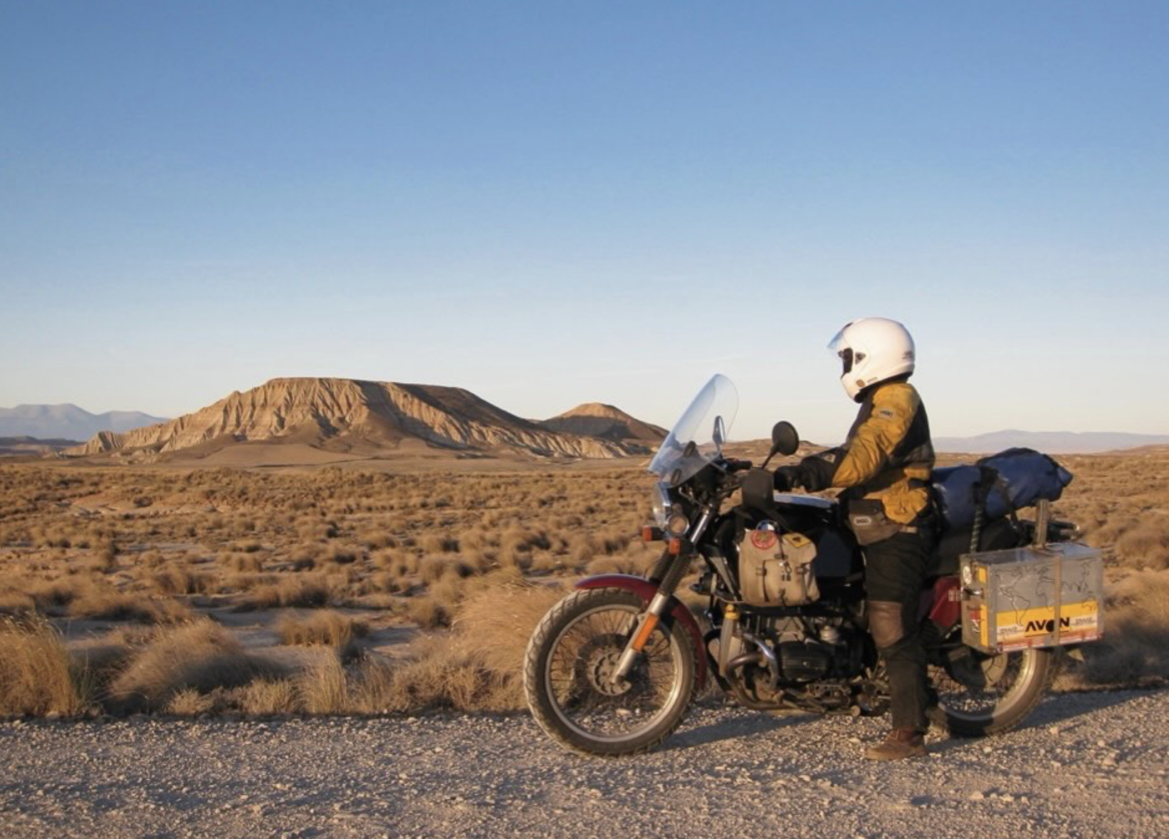 Manicom has traveled most of his life, using all manner of transportation. He explored Europe on a bicycle, hitchhiked by semi-truck, and crossed an ocean via cargo ship. All were tremendous experiences, he says, but motorcycles—a BMW R 80 GS, in particular—tick all the right boxes. For a chunk of that nearly decade-long journey, he even had a companion, aboard her own motorcycle.
